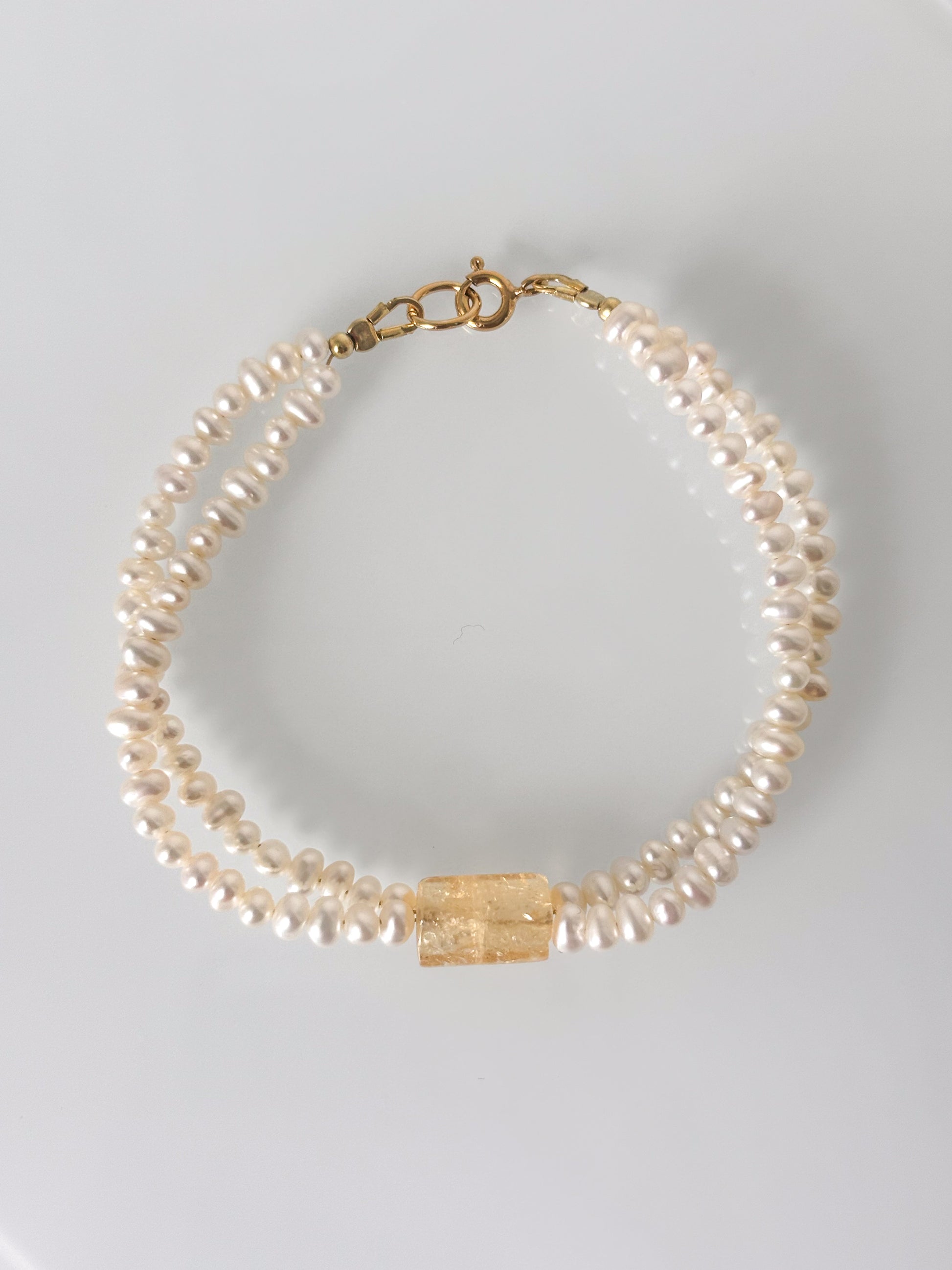 Ręcznie wykonana bransoletka z perłą słodkowodną, cytrynem oraz elementami z pozłacanego srebra próby 925.