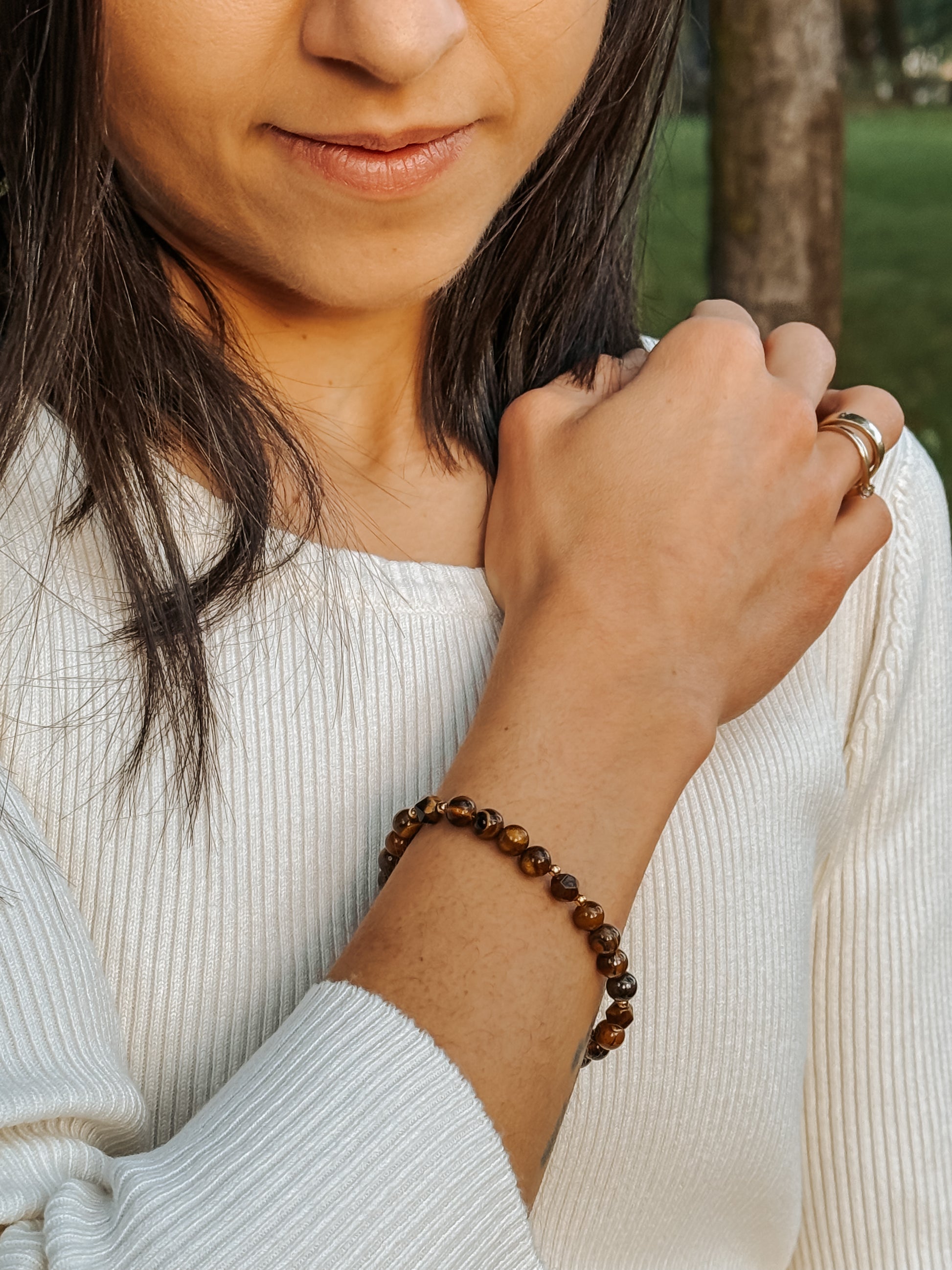 Tygrysie oko to kamień odwagi, ochrony i wewnętrznej siły. Pomaga zyskać jasność myśli, wzmacnia pewność siebie oraz sprzyja podejmowaniu decyzji z determinacją. Uważany jest za kamień, który przynosi równowagę emocjonalną i ochronę przed negatywnymi wpływami.