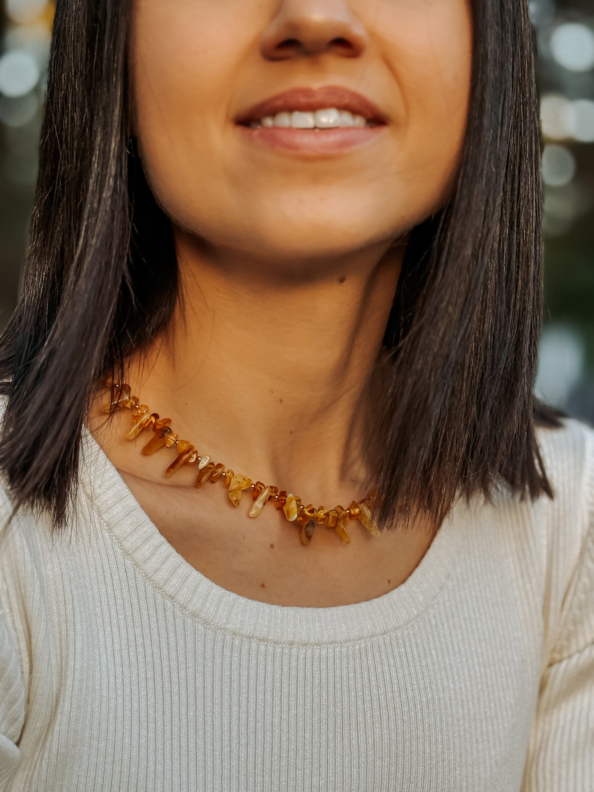 Bursztyn to kamień ciepła, ochrony i energii życiowej. Wspiera poczucie bezpieczeństwa, równowagi emocjonalnej i wewnętrznej siły. Uważa się, że dodaje odwagi, wspomaga koncentrację oraz przyciąga pozytywną energię, a jego naturalny, złocisty blask wnosi do biżuterii przytulną elegancję i unikalny charakter.