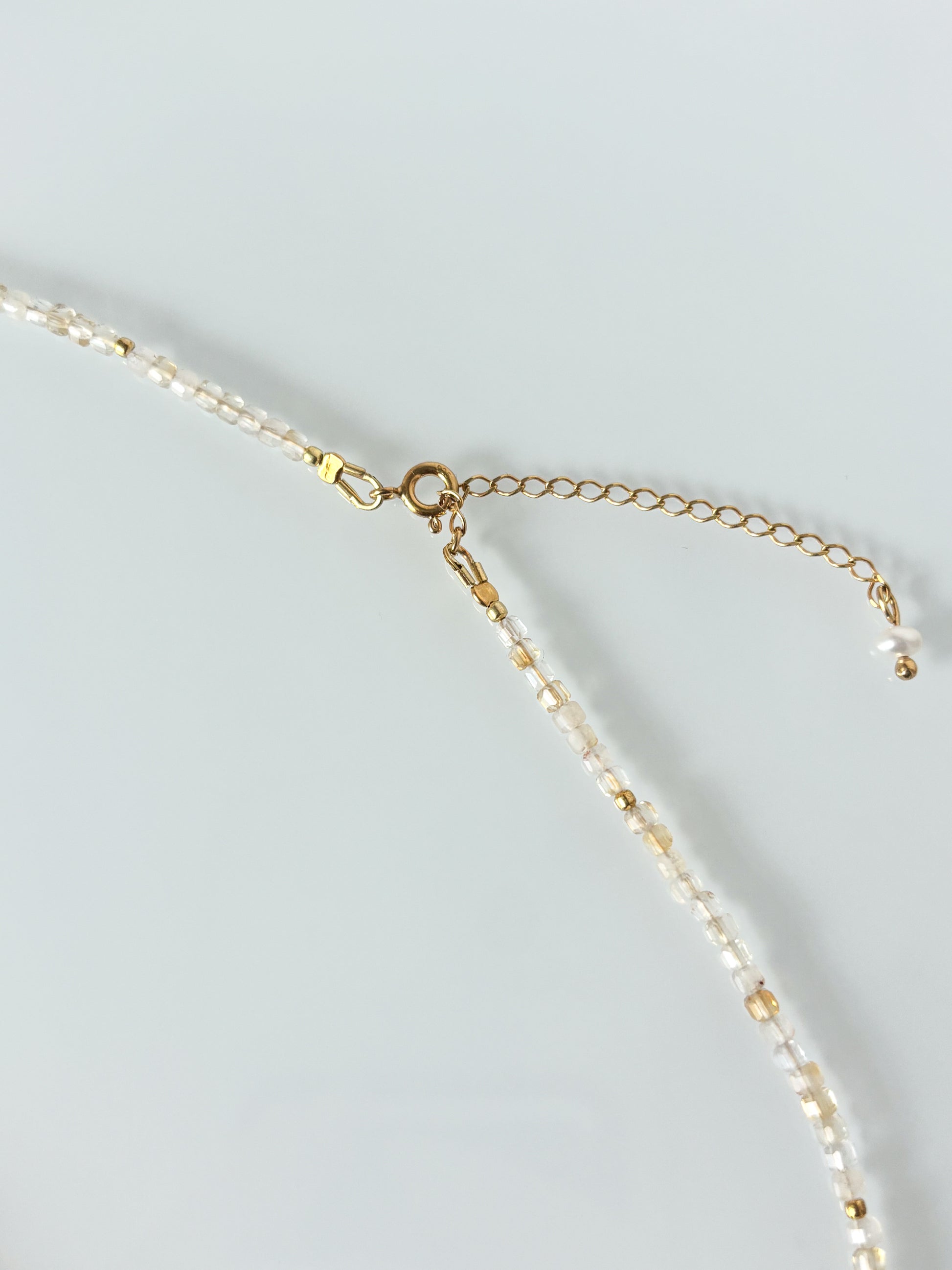 Ręcznie wykonany naszyjnik z cytrynem, perłą słodkowodną oraz elementami z pozłacanego srebra 925.