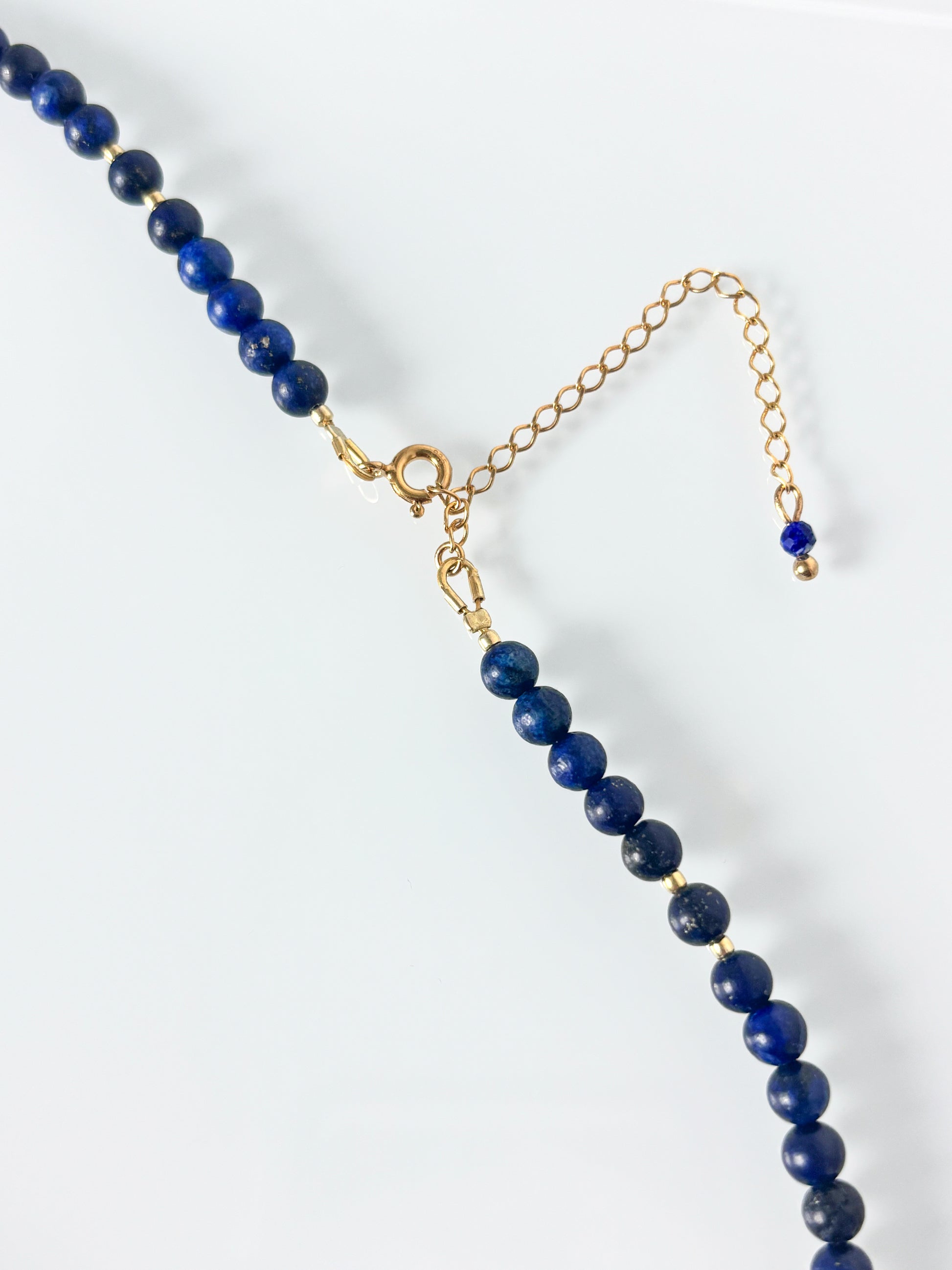 Ręcznie wykonany naszyjnik z lapisem lazuli oraz elementami z pozłacanego srebra próby 925.
