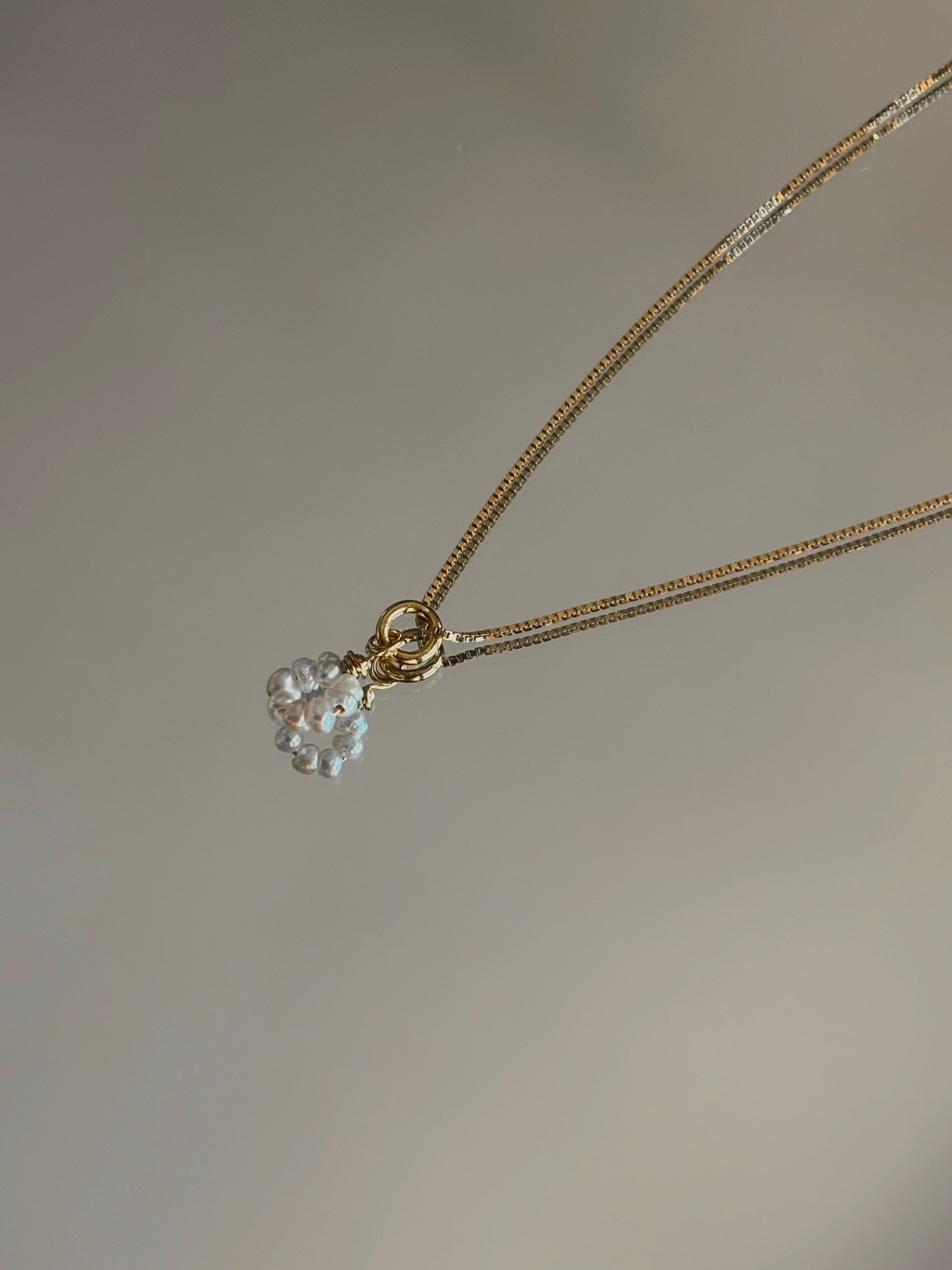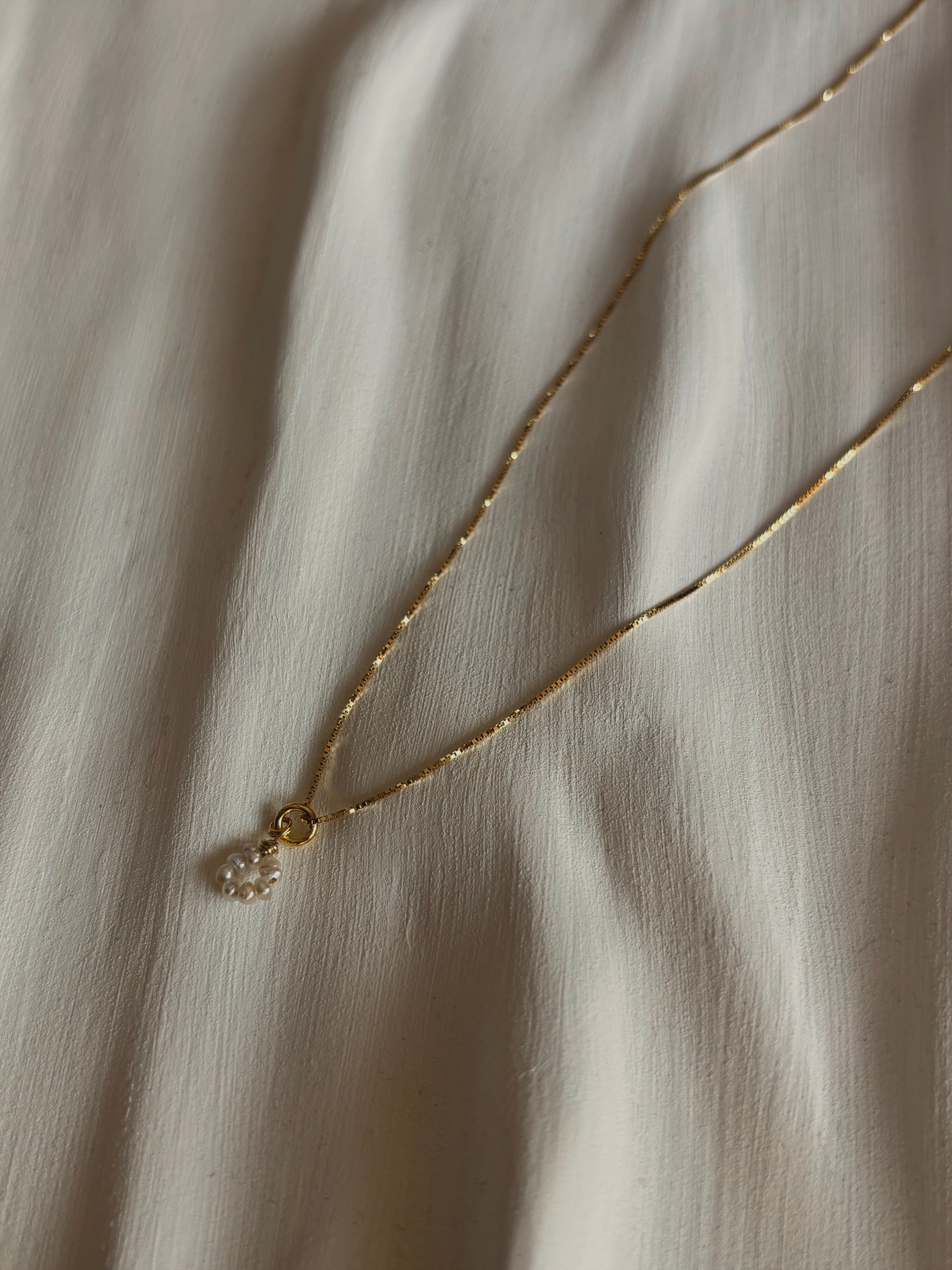 Delikatny naszyjnik z zawieszką z pereł słodkowodnych.
