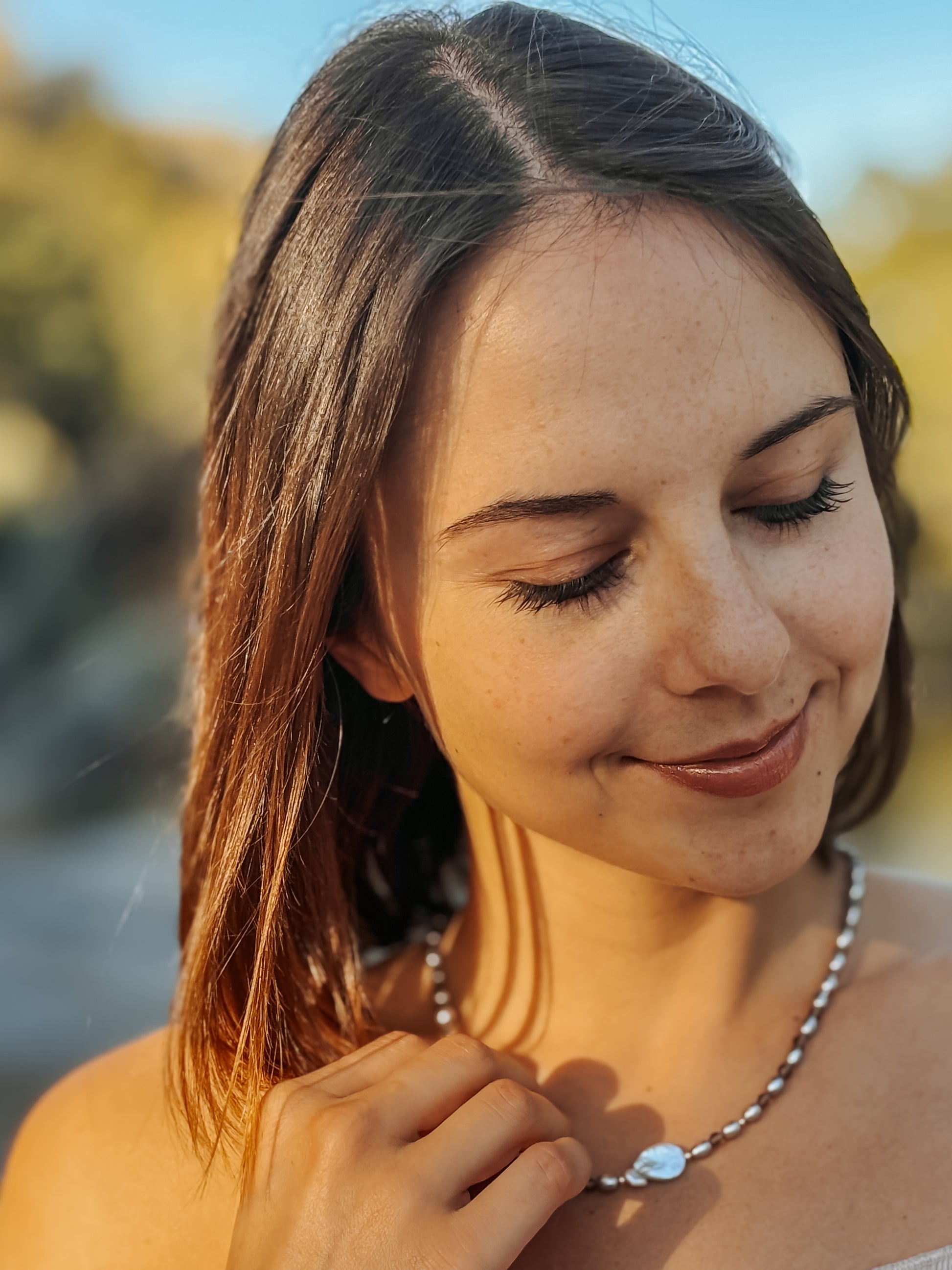 Perła symbolizuje czystość, harmonię i intuicję. Jej naturalny blask wnosi do biżuterii elegancję i subtelność. Sprzyja wewnętrznemu spokojowi, kobiecej energii oraz delikatnemu, ale pewnemu wyrażaniu siebie.